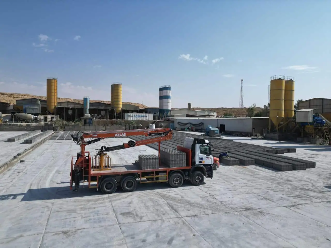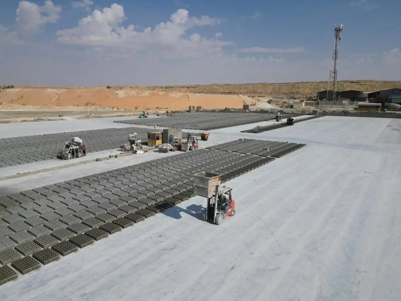 تم تشيد مصانع البلك بأعلي المواصفات والتقنيات الحديثة من معدات وآلات وتتميز بالجودة العالية من الدقة في المقاسات حيث تم توفير القوالب ذات المواصفات العالية لضمان الدقة في الإنتاج ويبلغ إجمالي الإنتاج اليومي 200,000 الف بلكة بجميع المقاسات وذلك لتغطية الطلب علي مواد البناء بشكل عام